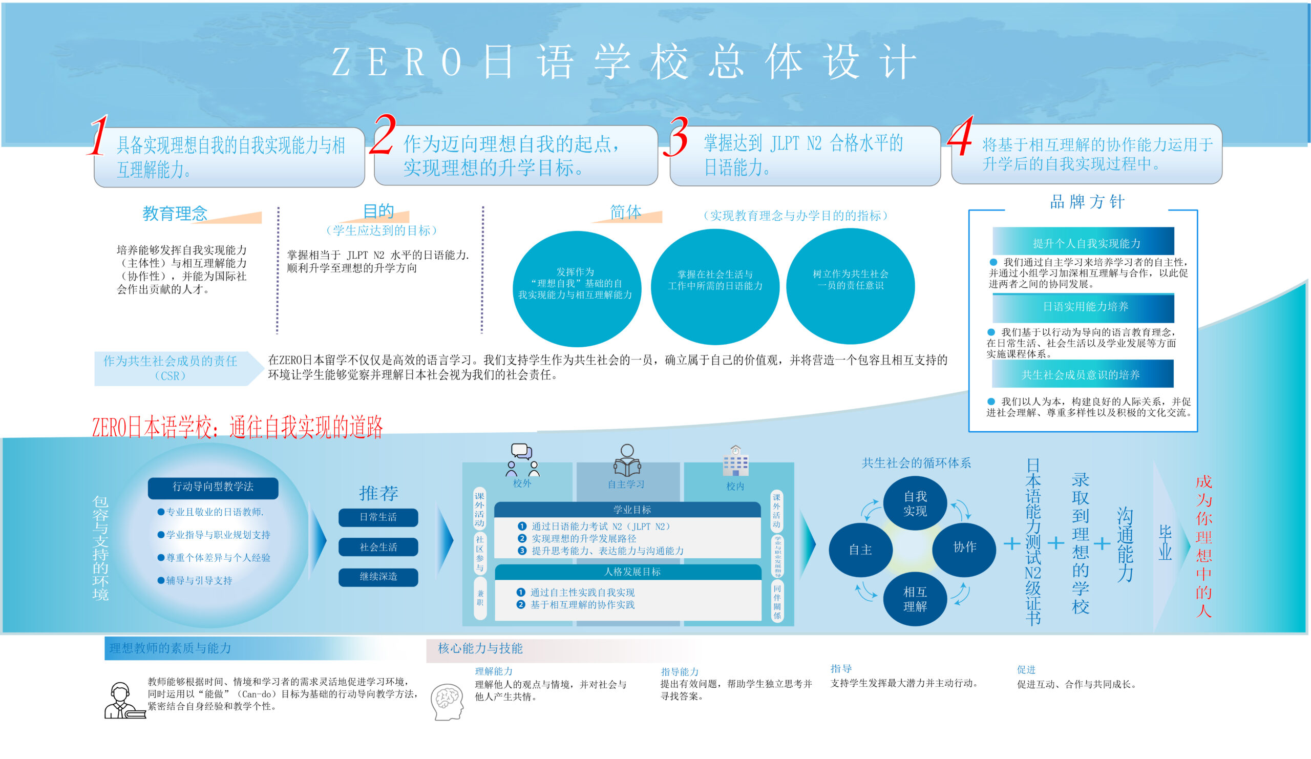 我们的学校位于尼崎市,这是一个外国人和当地居民长期共存的城市。因此,我们的目标是成为一个多元共生的中心,让学生和当地居民相互认识、互动并增进理解。